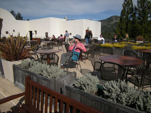 Gary Wilson suggested Sterling, so we went there next and really enjoyed their tasting style. Instead of going to a tasting bar there were several stations set up around the winery following a self-guided tour route. The tram ride up was fun and the wines much more to our liking. Did I mention that we lucked into unbelievable weather; 25-28C for the weekend and sunny? Wow.
